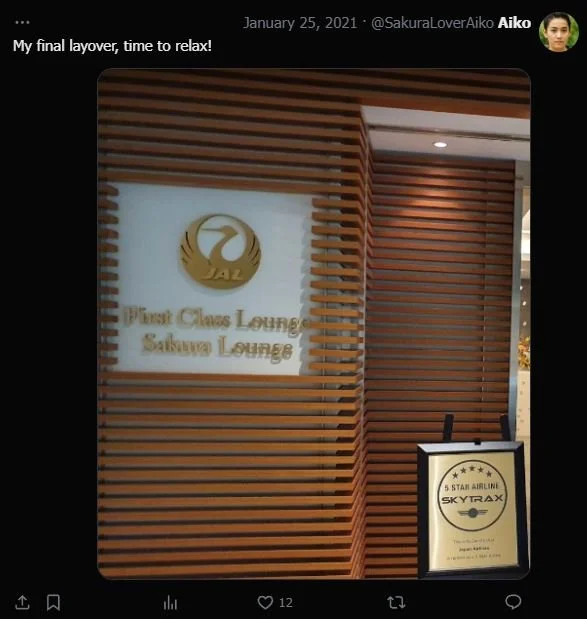 Next, we are asked where they stopped for a Layover. The attacker posted an image of the lounge they visited during they layover. So I could easily google for JAL’s First Class Lounge -Sakura Lounge. Through Jal’s website, I found that this lounge is located in Tokyo International Airport (Haneda)