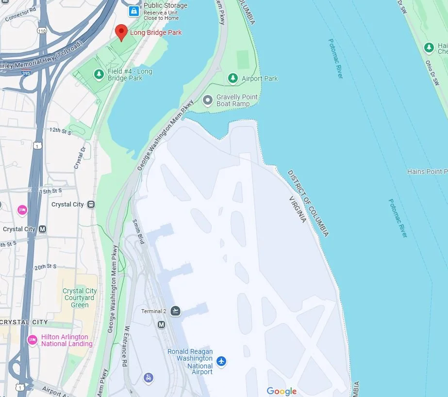 Seems like a pretty close match! THM is asking which is the closet airport to this location shared by the attacker. By searching the park on google maps and zooming out just a little bit, I found that there’s an airport pretty close by! The Ronald Reagan Washington National Airport.